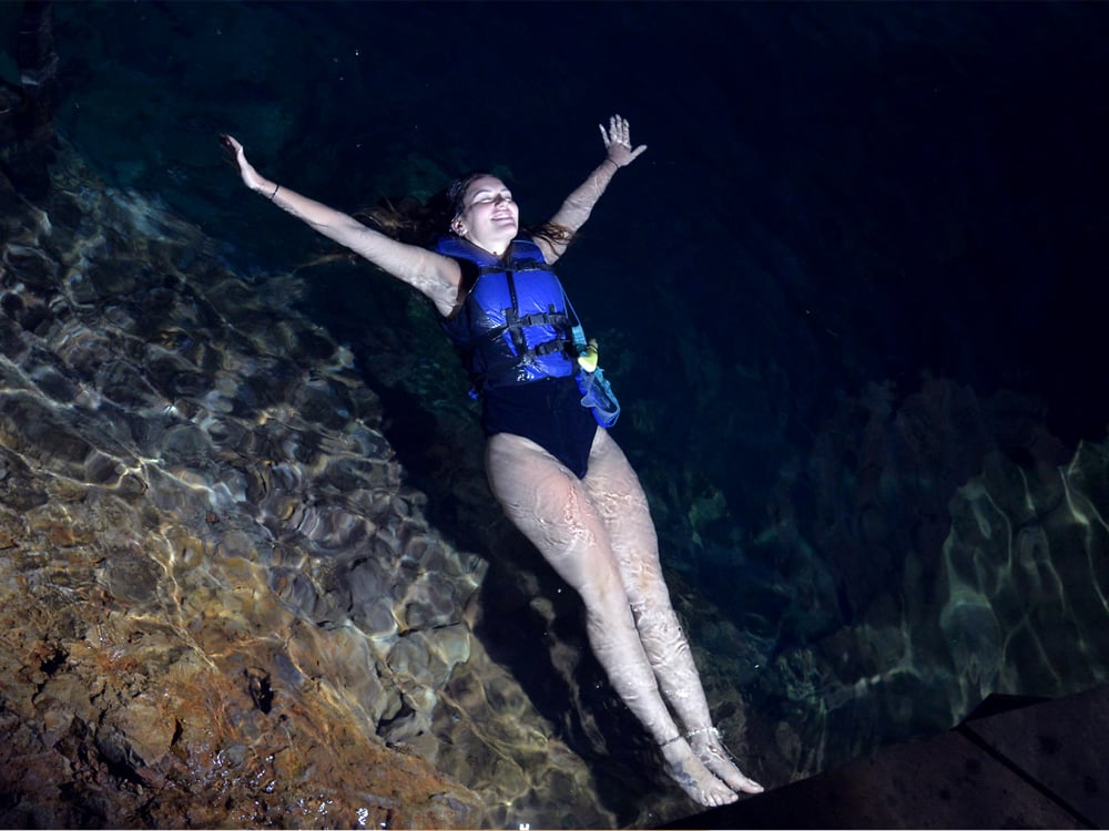 águas cristalinas onde é possível fazer flutuação, e o acesso se dá através de